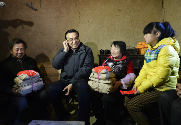 连续4年,李克强都在春节前夕深入偏远穷苦地区看望百姓。今年春节前的最后一次国务院常务会上,他专门部署要求全国各县(市、区)建立健全由政府负责人牵头的困难群众生活保障工作协调机制,一定要把党中央、国务院相关决策部署落实到基层。