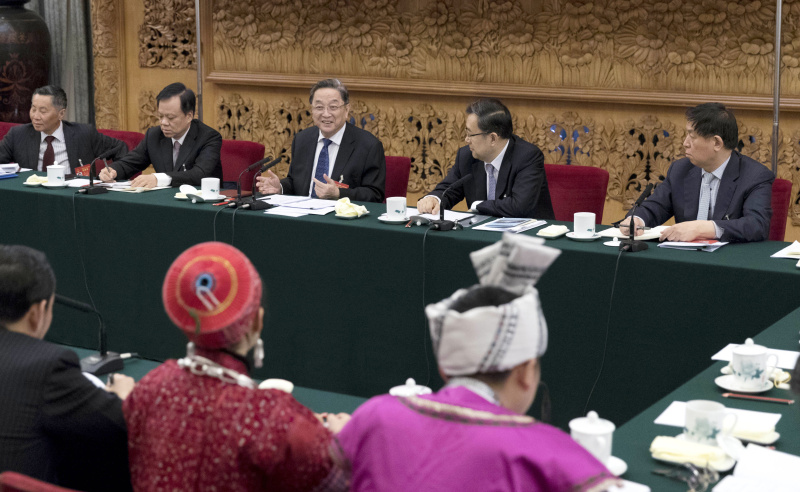 3月9日,中共中央政治局常委、全国政协主席俞正声参加十二届全国人大五次会议贵州代表团的审议。新华社记者 丁海涛 摄