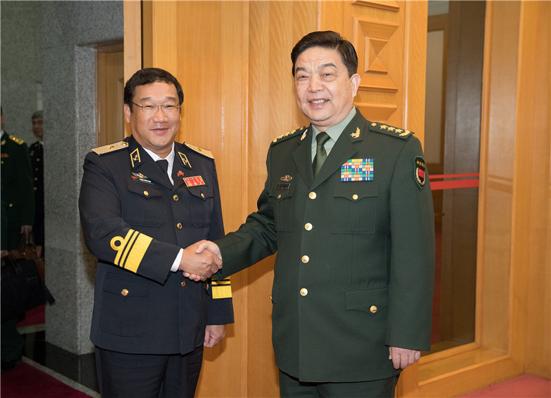 3月15日,国务委员兼国防部长常万全在北京会见越南海军司令范怀南。新华社记者 琚振华 摄